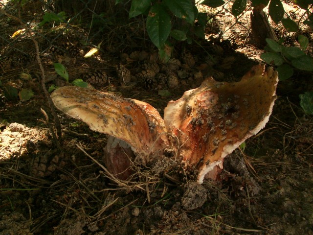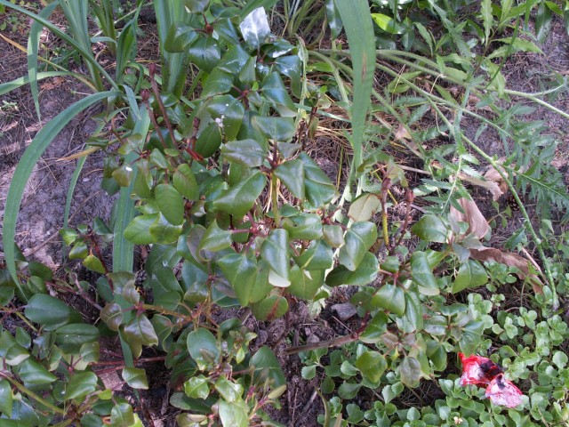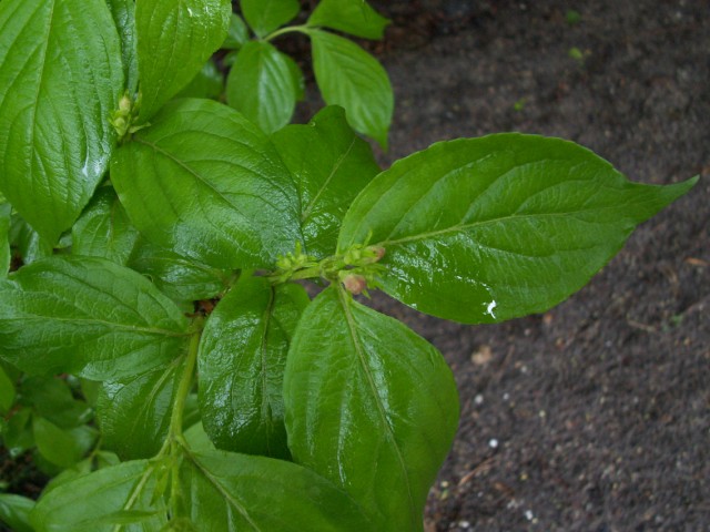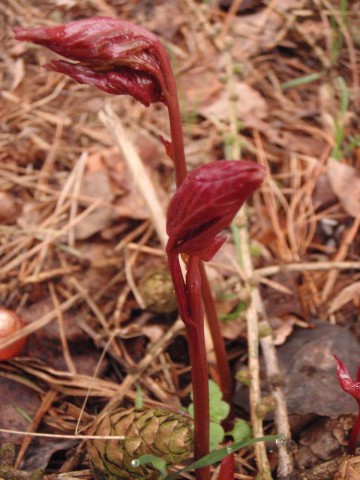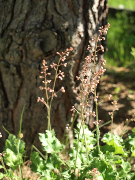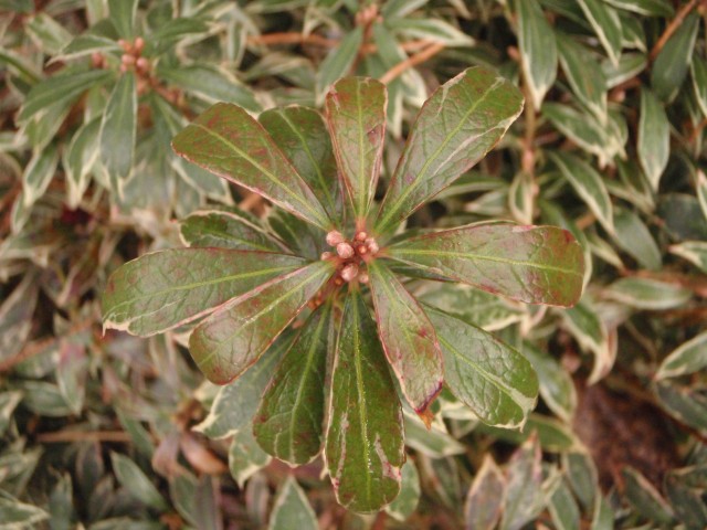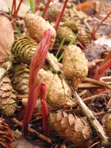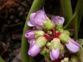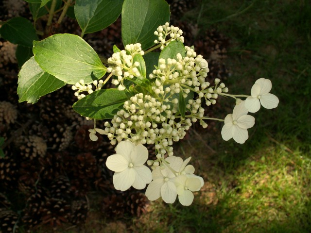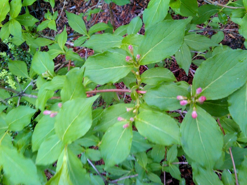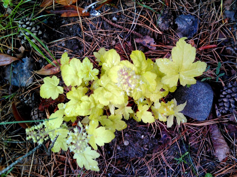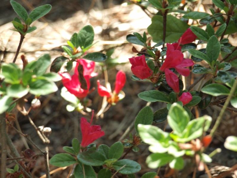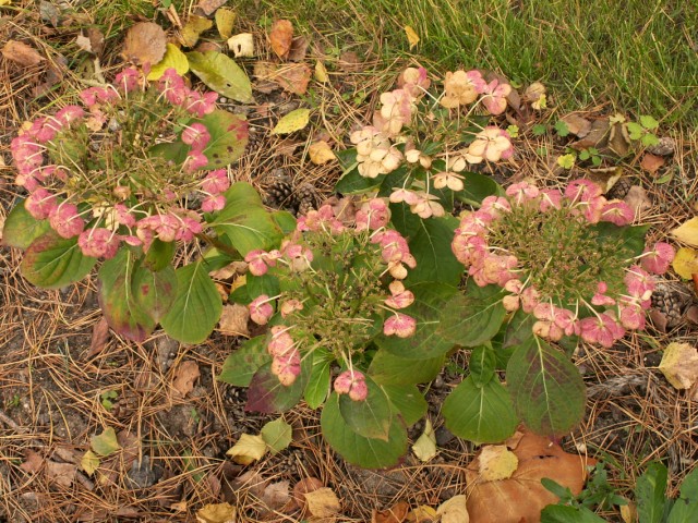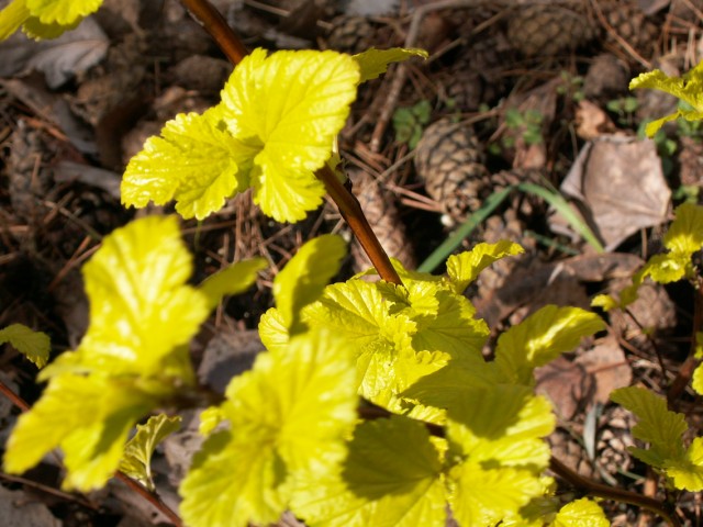…i od razu popełniłam błąd przy sadzeniu: pożałowałam kwaśnego torfu i ściółki z kory, przekonana, że igły i szyszki dostatecznie zakwasiły glebę i mam idealne warunki dla kwaśnolubnych. Niestety, brzegi liści zaczęły brązowieć i roślina nie wyglądała zdrowo, mimo, ze zdążyła pięknie zakwitnąć. Brak ściółki spowodował wysychanie, co zauważyliśmy po tygodniu nieobecności w Osolinie. Oczywiście błędy naprawiłam, wymieniając glebę wokół kwiatka i ściółkując zebranymi w ogrodzie szyszkami. Zauważyłam również, że rozwijające się młode listki tego różanecznika są jasno-brązowe i lepkie. To mnie oczywiście przestraszyło nie na żarty, ale eksperci na Forum Ogrodniczym uspokoili mnie, że to naturalne dla niektórych odmian